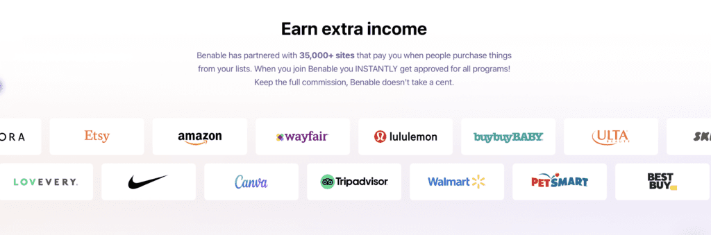 Benable has partnered with over 35,000 brands across all categories.