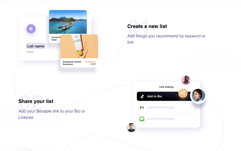Share Your Lists: Once your lists are ready, Benable generates shareable links. You can embed these on your website, share to social media, add to your Linktree, and more.