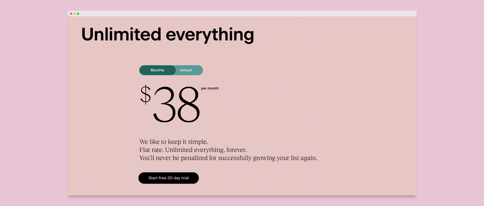 Yes, you heard that correctly. Unlike virtually every other platform, Flodesk doesn’t scale pricing with your growth. Usually, you pay more for more subscribers. Hundreds, even thousands in some cases. Flodesk stays at $38 a month. That’s a huge deal.