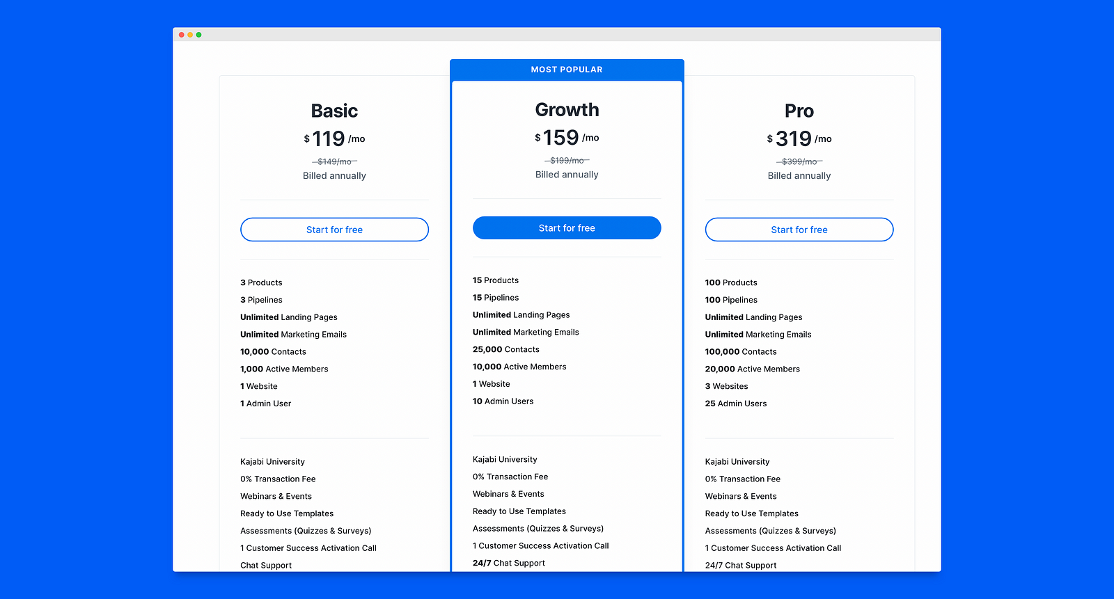 But Kajabi is expensive. It starts at $149 per month for “only” 10,000 contacts.