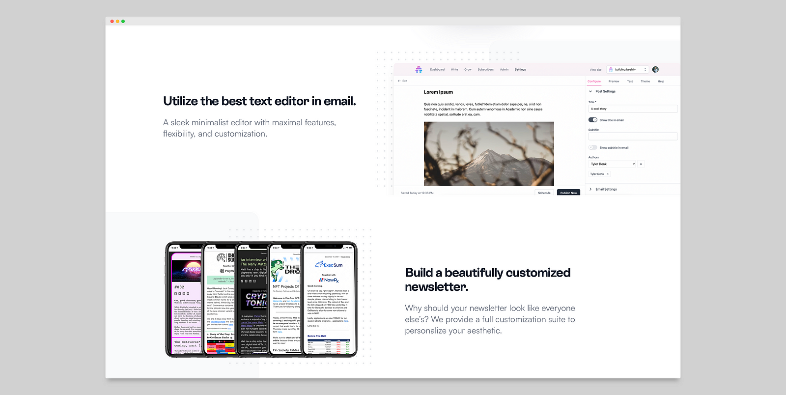 I like the design and ease-of-use a lot with Beehiiv. Since they’re new, it remains to be seen how well they can establish their brand among the other giants.