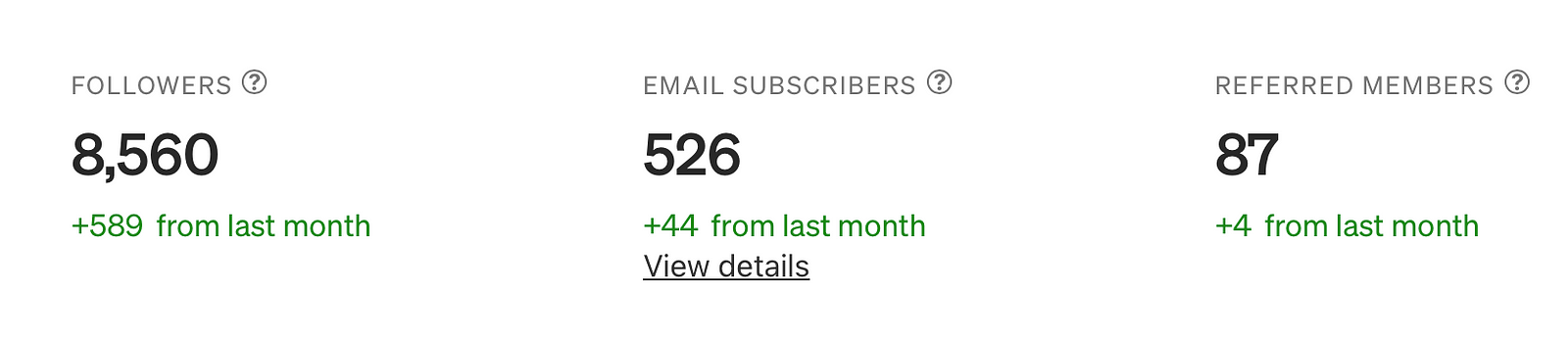 Views and reads are one thing — and within my first year I’ve seen many ups and downs in these two metrics — but the audience stats have been growing steadily over the past 12 months.