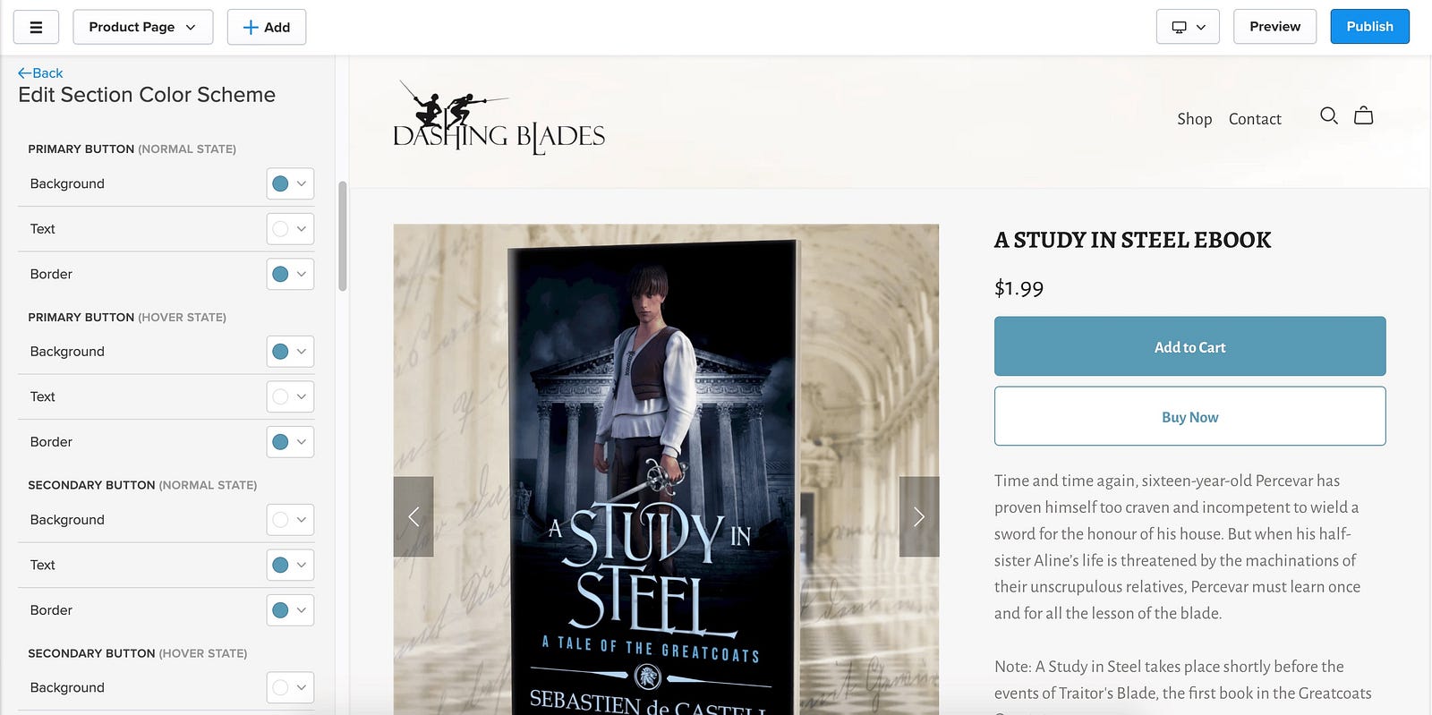 The elegant themes and seamless product integration get your store up and running quickly. You can quickly add sections, create additional pages, integrate a blog and write blog posts, and more.