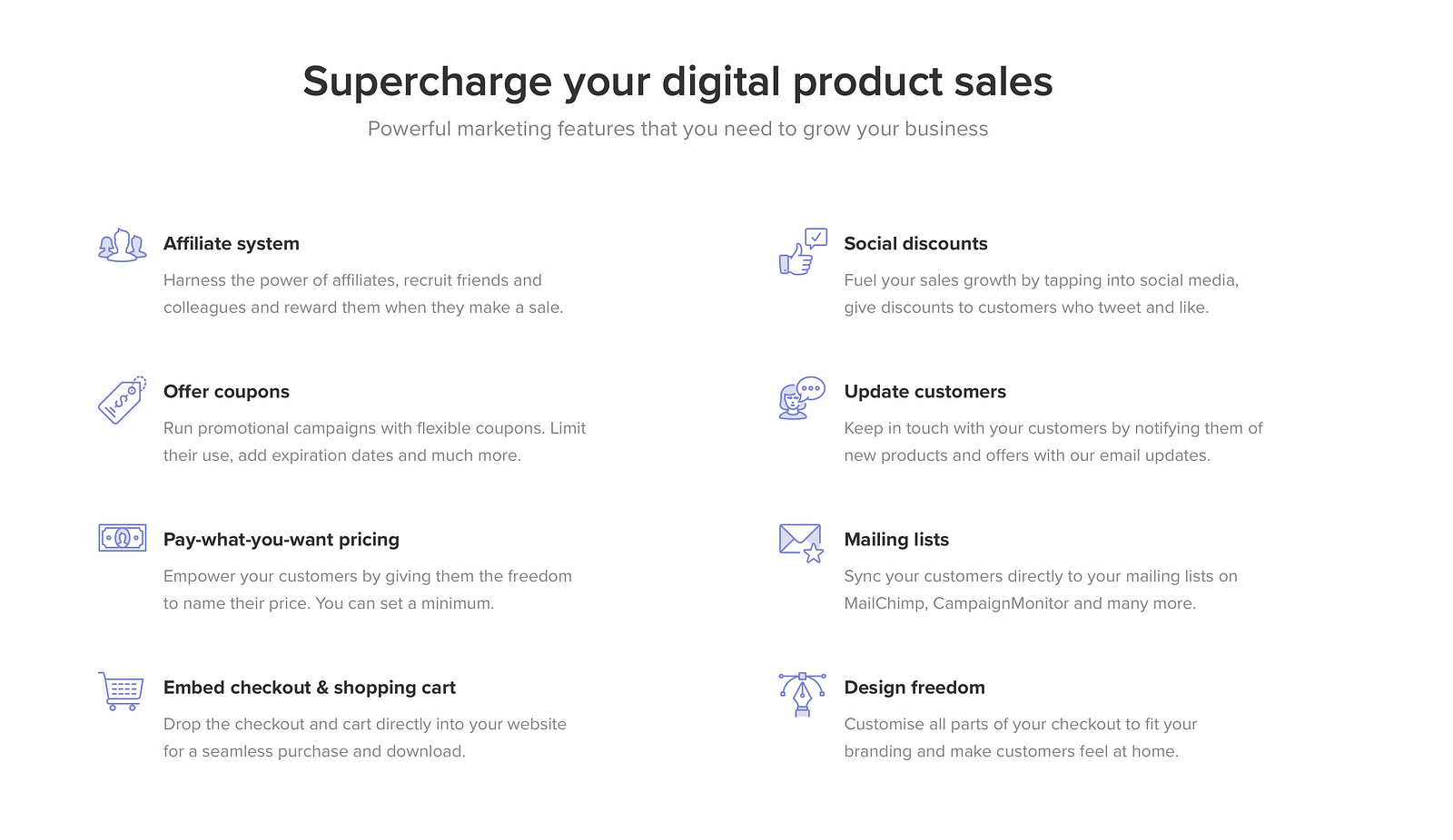 Apart from that, Payhip offers many additional features like an affiliate program, upsells, cross-sells, social discounts, pay-what-you-want, embedded products and shopping cart experience to integrate with your existing website, and much more.