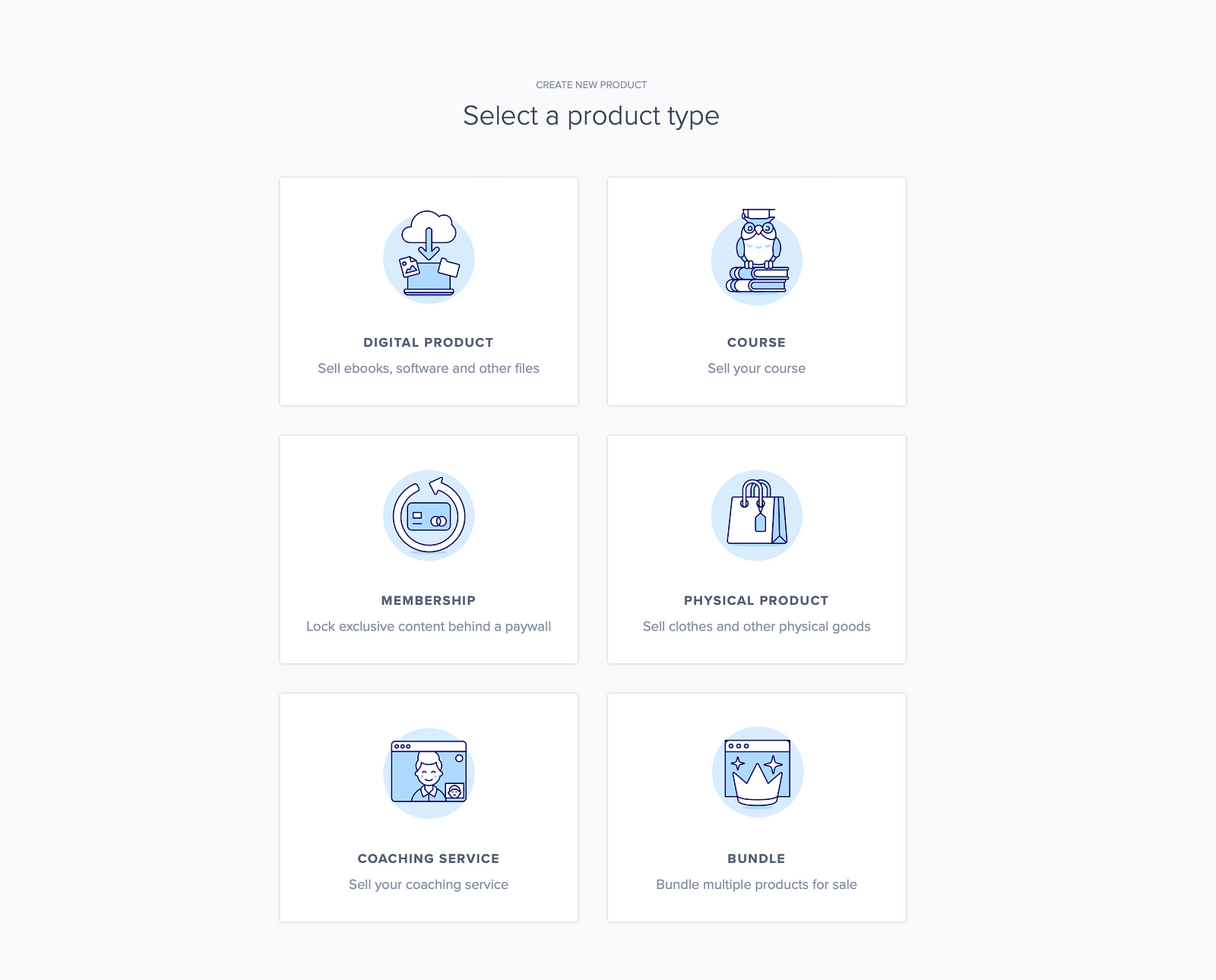 There are a number of options to choose from, like digital products, courses, memberships, and even physical products. See more below ↓