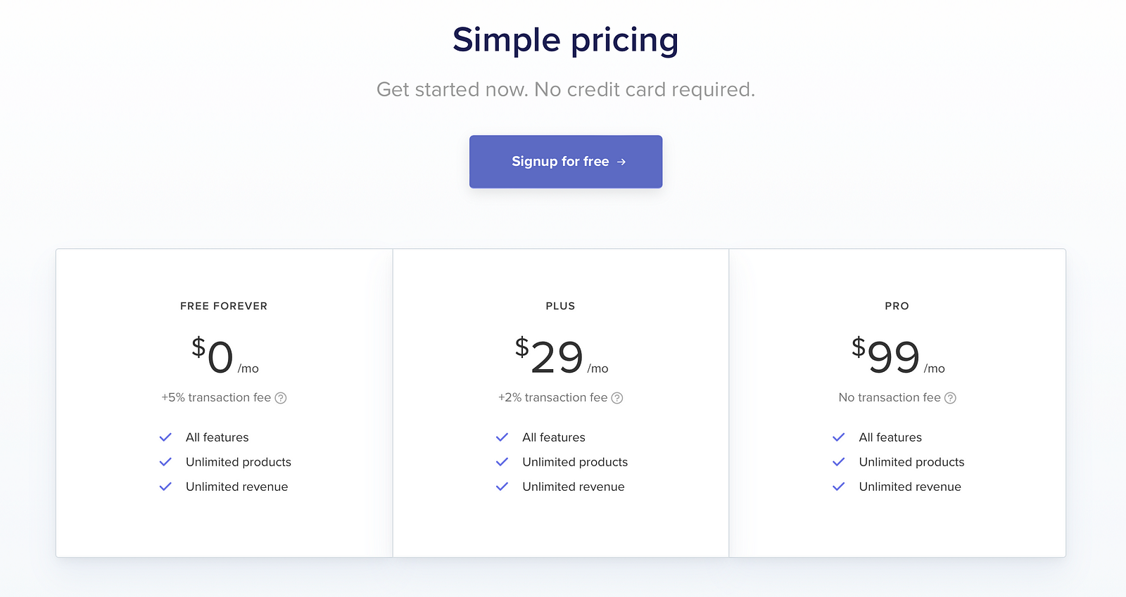 Additionally, the company offers two paid plans that are ideal for high-volume sellers with even lower at 3% or no fees at all for a monthly subscription of $29 or $99 respectively.