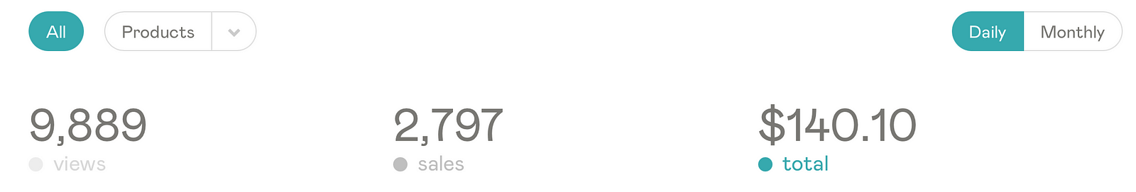 Now, before you go nuts here. It wasn’t much. Not at all. Within this whole first year on Gumroad*, I made around $150 from these free products.