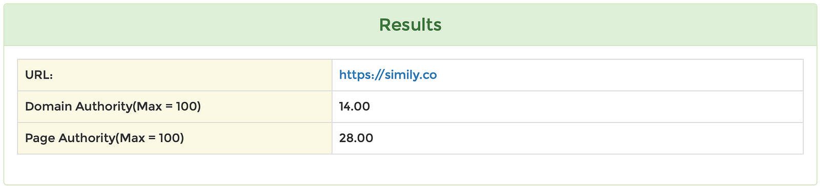 The domain authority (DA) of the website is still quite low at 14 (out of a possible score of 100) compared to established sites like Medium with 95 or Vocal Media at 65. This score directly affects the search engine visibility of Simily posts.