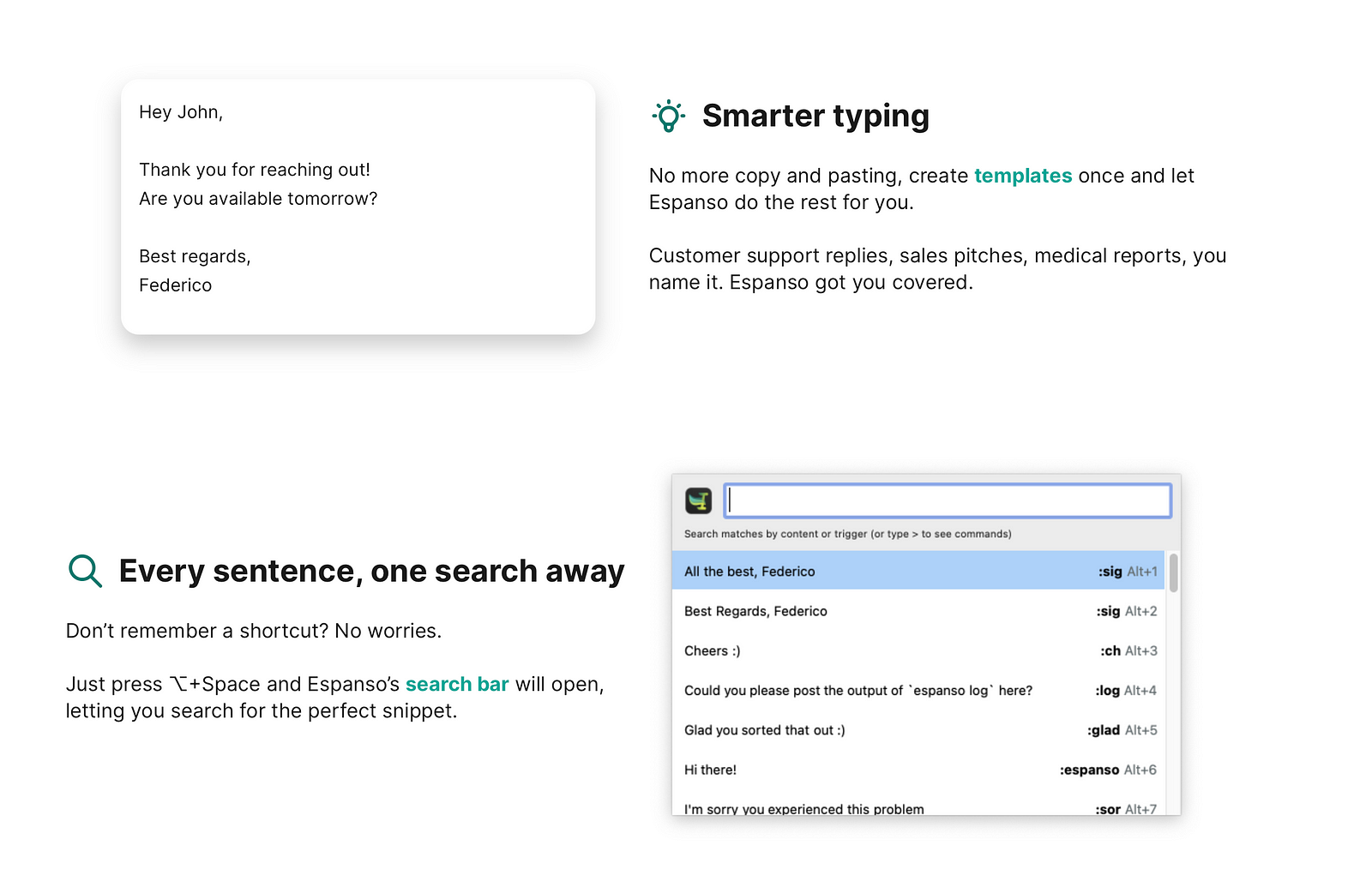 Espanso is the kind of app that makes you feel like a keyboard wizard. It lets you create custom shortcuts for text — like typing :addr and getting your full address, or :sig for your email signature.
