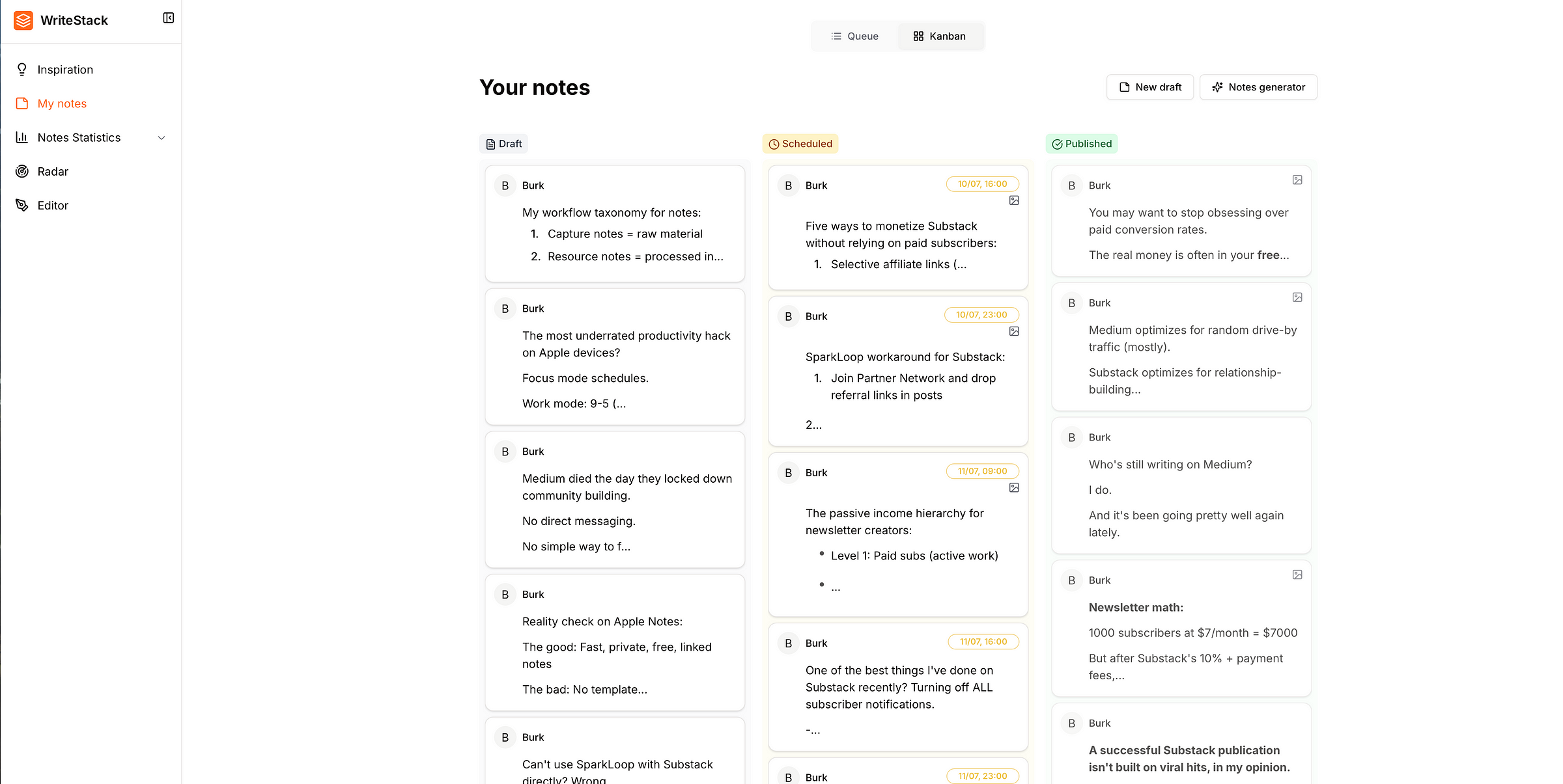 Use the Kanban, check your stats, schedule what you can, and ignore the AI output when it’s off the mark.
