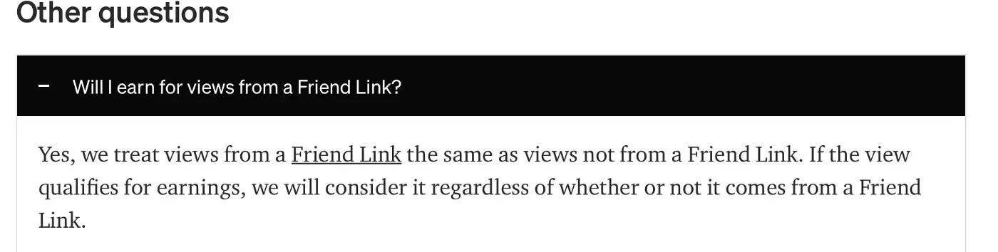 If a Medium member clicks on your friend link and reads the story, you will still get paid for their reading time. Medium accounts for member reading time via friend links as if they were “normal” links.